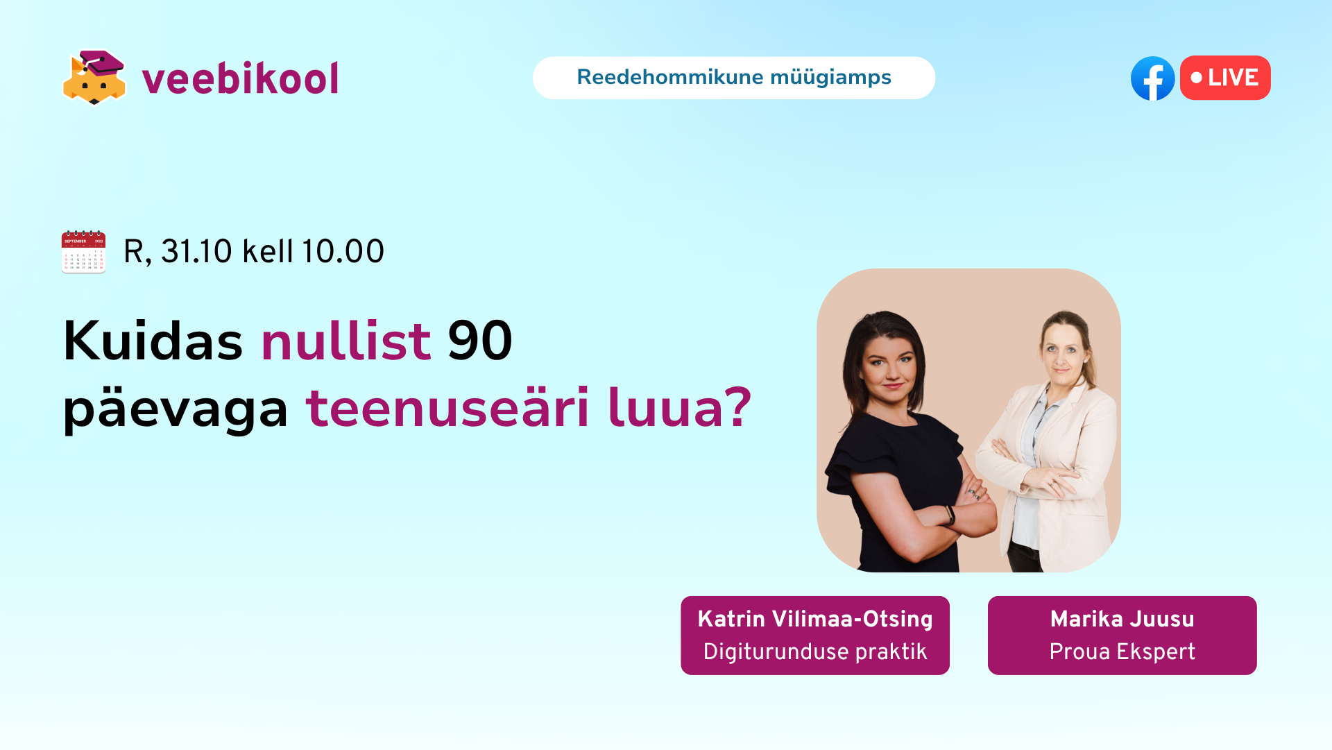 Reedene õpiamps: KUIDAS NULLIST 90 PÄEVAGA TEENUSEÄRI LUUA? Katrin Vilimaa-Otsing ja Marika Juusu