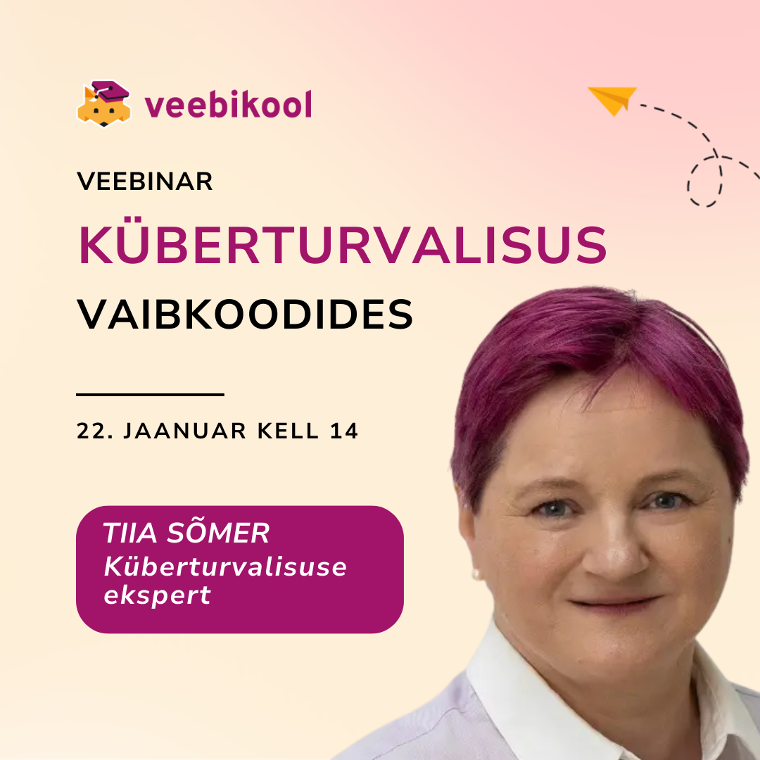 PS! Kas teadsid, et see koolitus on osa 4-nädalasest “Vaibkoodimise õpiprogrammist”? Kui tunned, et tahad lisaks turvateadmistele ka ise äppe ehitama õppida (koos juhendamisega), siis on kavalam liituda hoopis õpiprogrammi teise grupiga – https://veebikool.ee/vaibkoodimise-opiprogramm/
