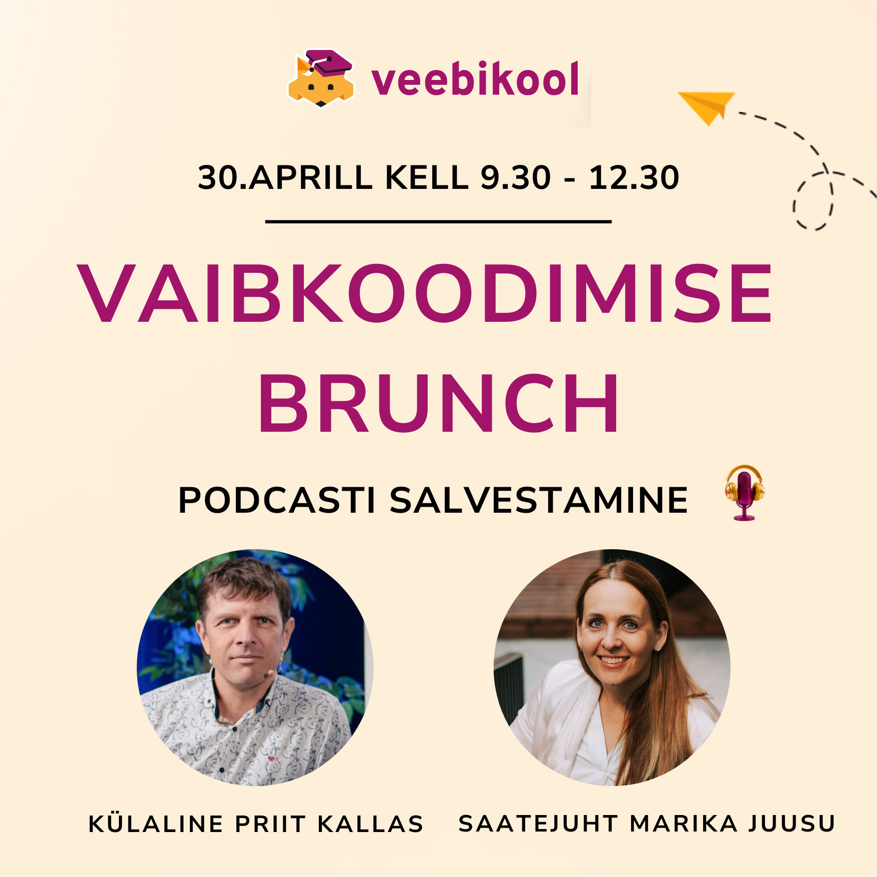 Kolm tundi Tallinnas Boostnupi stuudios, kus õpid vaibkoodimise tööriistad, ehitad oma idee juhendaja abiga valmis ja osaled päris podcasti salvestuses külalisega.